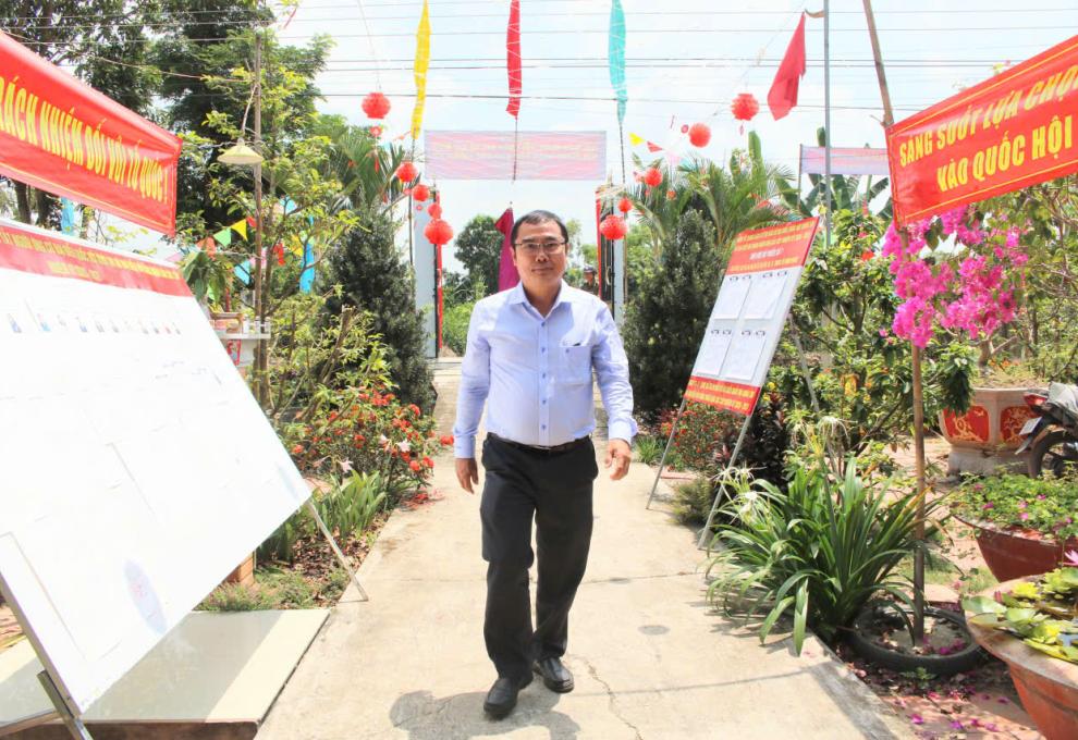 Đồng chí Trần Văn Bình Linh kiểm tra công tác chuẩn bị bầu cử trên địa bàn xã Vĩnh An