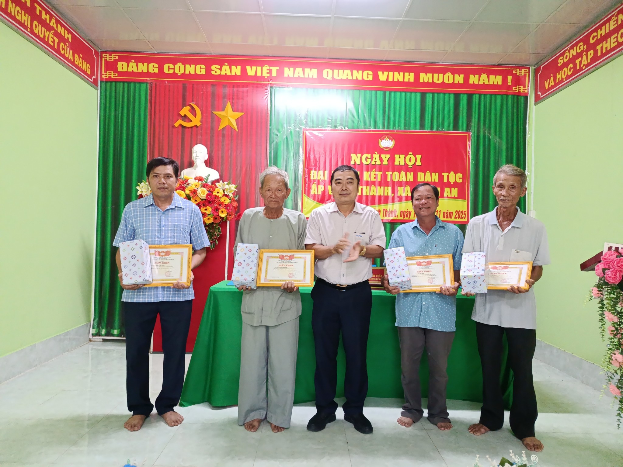 Dịp này, Đảng ủy, HĐND, UBND, UBMTTQVN xã Vĩnh An đã trao tặng ấp Vĩnh Thành 1 phần quà nhân ngày hội. UBMTTQVN xã Vĩnh An cũng trao tặng giấy khen cho 9 gia đình đạt danh hiệu gia đình văn hóa tiêu biểu xuất sắc năm 2025. Cùng ngày các ấp trên địa bàn xã Vĩnh An cũng tổ chức ngày hội đại đoàn kết toàn dân tộc năm 2025.