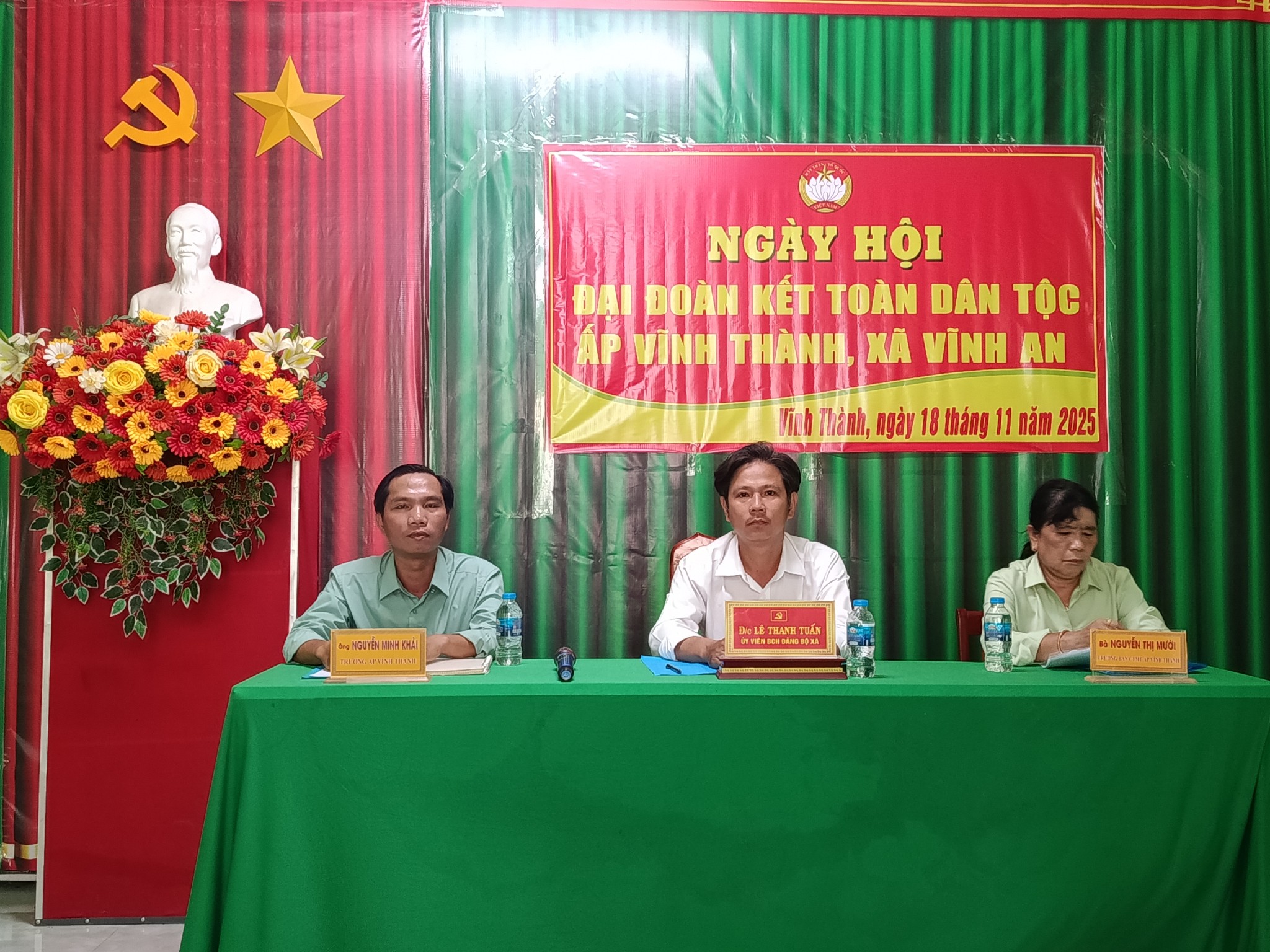 Nhằm thiết thực chào mừng kỷ niệm 95 năm Ngày thành lập Mặt trận Dân tộc thống nhất Việt Nam 18/11/1930 – 18/11/2025, chiều ngày 18-11 -2025, Ban công tác Mặt trận ấp Vĩnh Thành, xã Vĩnh An tổ chức Ngày hội Đại đoàn kết toàn dân tộc năm 2025. Tham dự ngày hội có đồng chí Bùi Công Phước, Bí thư Đảng ủy – Chủ tịch Hội đồng nhân dân xã Vĩnh An; đồng chí Trần Thái Hiền, Phó Chủ tịch Hội đồng nhân dân xã Vĩnh An; đồng chí Nguyễn Văn Nơ, Phó Chủ tịch Ủy ban Mặt trận Tổ Quốc Việt Nam xã, Chủ tịch Hội Cựu chiến binh xã Vĩnh An cùng đông đảo bà con nhân dân tham dự.