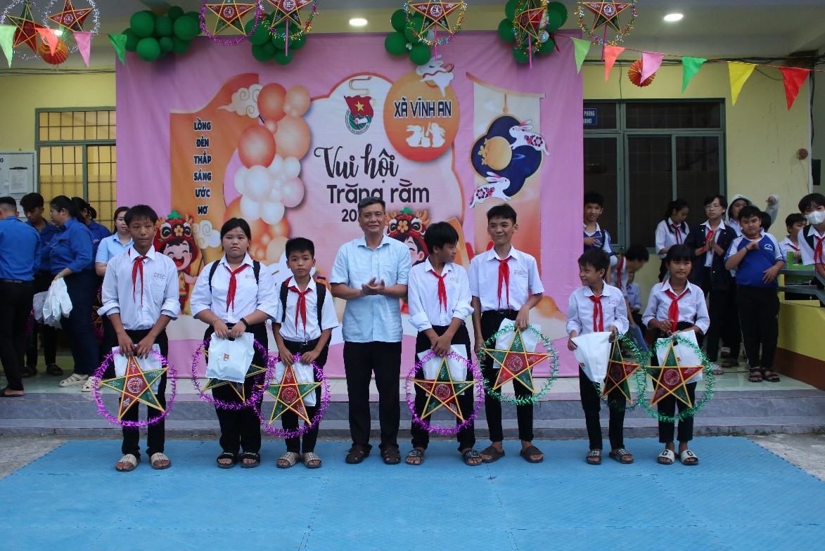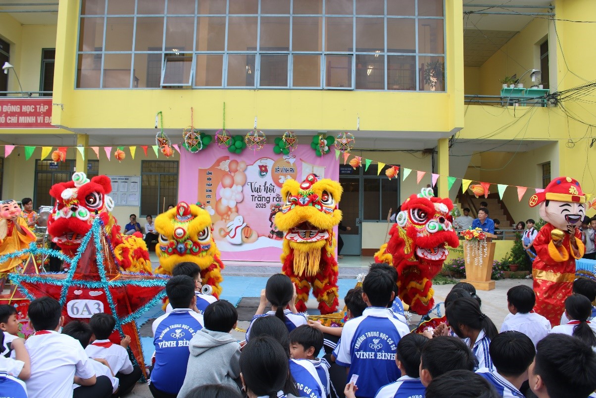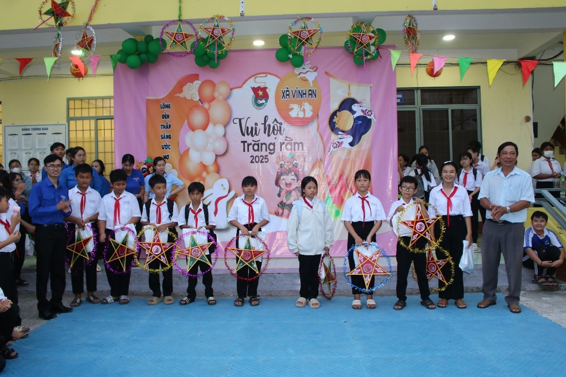 Chiều ngày 6/10/2025, tại UBND xã Vĩnh An, trường THCS Vĩnh Bình phối hợp với Đoàn Thanh niên Cộng sản Hồ Chí Minh xã Vĩnh An tổ chức chương trình “Vui hội trăng rằm”. Tham dự chương trình có đồng chí Trần Văn Bình Linh, Phó Bí thư Đảng ủy - Chủ tịch UBND xã Vĩnh An; đồng chí Trương Hòa Lắm, UVBTV Đảng ủy - Phó Chủ tịch UBND xã Vĩnh An; đồng chí Nguyễn Vạn Huy, Phó Chủ tịch UBMTTQVN xã - Kiêm Bí thư Đoàn thanh niên xã Vĩnh An, cùng mạnh thường quân và các đồng chí thuộc các ngành, đoàn thể, xã, ấp; Ban Giám hiệu nhà trường tham dự.