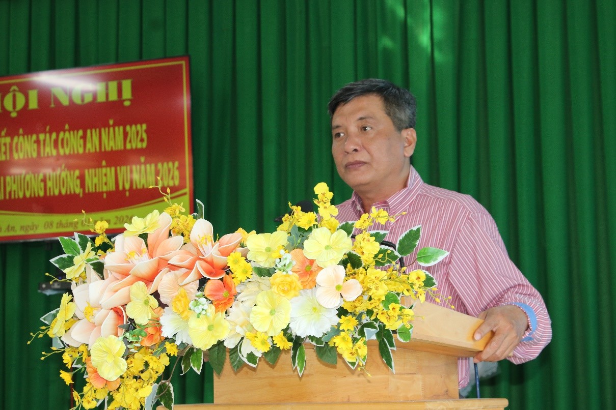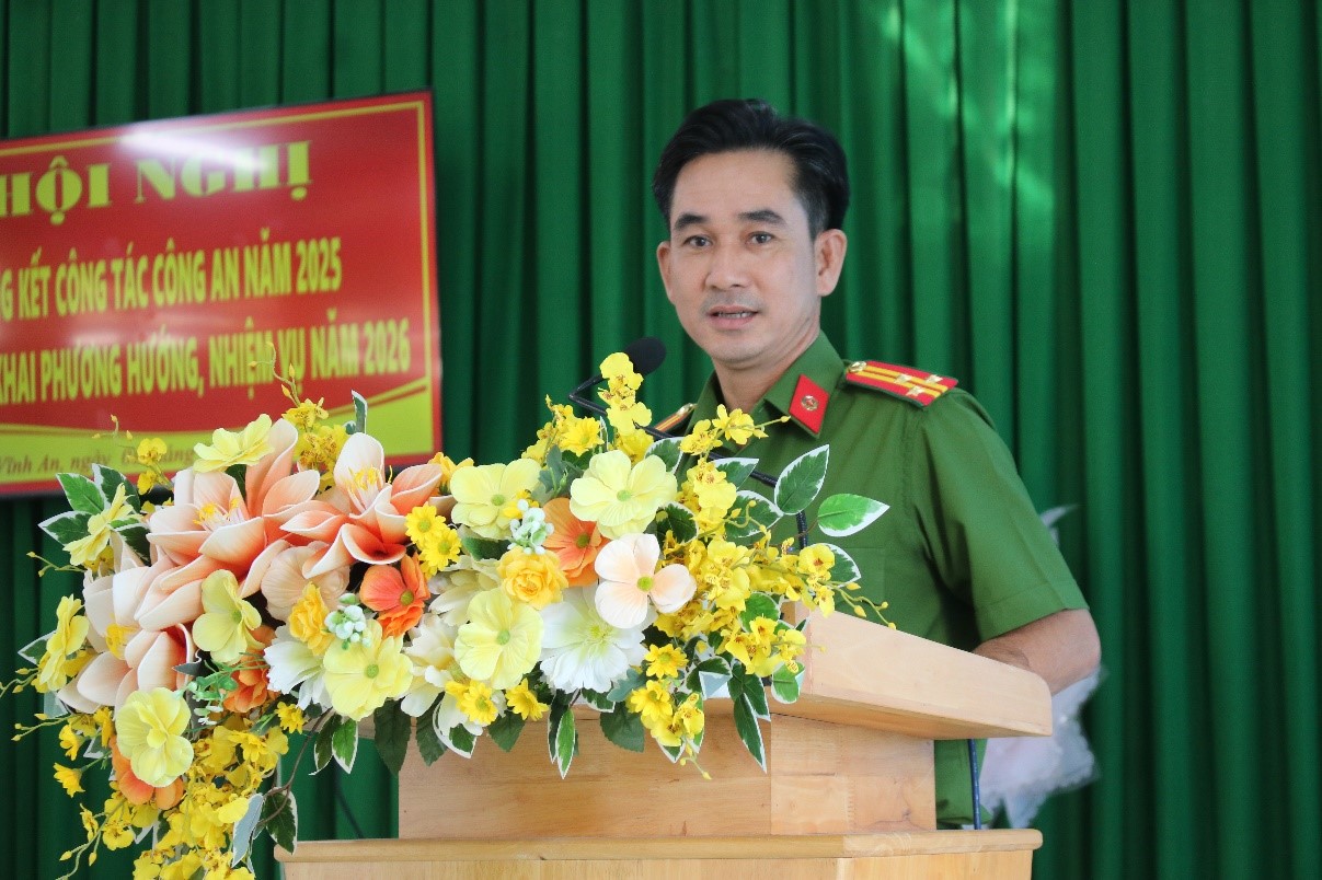 Chiều ngày 8/1/2026, Công an xã Vĩnh An tổ chức hội nghị tổng kết công tác Công an xã năm 2025. Dự hội nghị có đồng chí Thượng tá Trần Quốc Toản, Phó Trưởng Phòng PK 02 Công an tỉnh An Giang; đồng chí Bùi Công Phước, Bí thư Đảng ủy – Chủ tịch Hội đồng nhân dân xã Vĩnh An; đồng chí Trần Văn Bình Linh, Phó Bí thư Đảng ủy - Chủ tịch Ủy ban nhân dân xã Vĩnh An; đồng chí Trần Thái Hiền, Ủy viên Ban thường vụ Đảng ủy, Phó Chủ tịch Hội đồng nhân dân xã Vĩnh An; Trung tá Nguyễn Thanh Lộc, Ủy viên Ban thường vụ Đảng ủy Trưởng công an xã Vĩnh An.