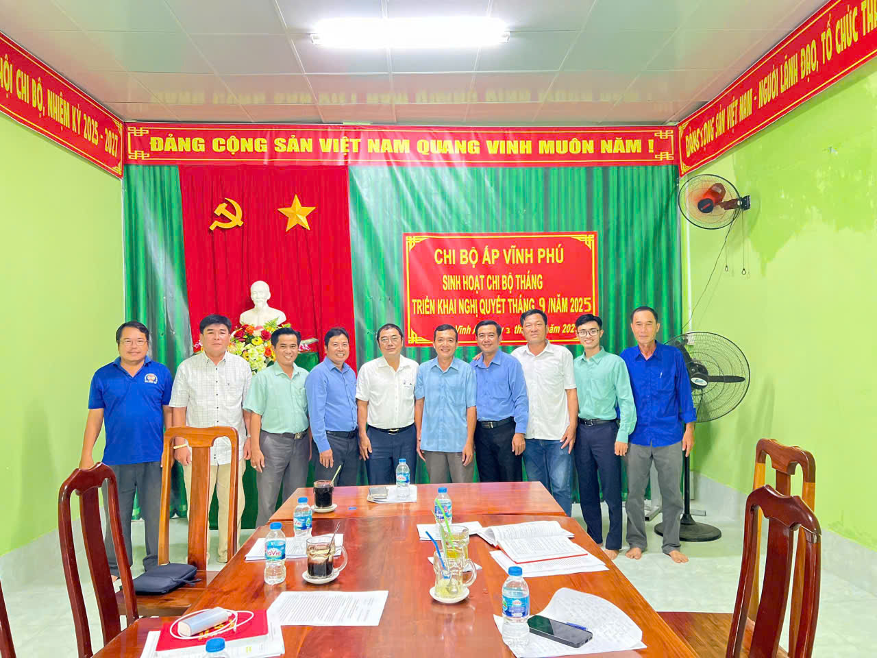 Sáng ngày 24/10/2025, đồng chí Bùi Công Phước, Bí thư Đảng ủy, Chủ tịch Hội đồng nhân dân xã Vĩnh An làm trưởng đoàn công tác đến làm việc với đơn vị ấp Vĩnh Thành, Vĩnh Phú và ấp Vĩnh Quới. Cùng dự có đồng chí Lý Phước Đều, Phó Trưởng Ban Xây dựng Đảng; Đồng chí Hồ Văn Tuấn, Phó Chủ nhiệm Ủy ban kiểm tra Đảng ủy xã; Khưu Hoàng Thông, Ủy viên Ban thường vụ Đảng ủy, Chủ tịch UBMTTQVN xã Vĩnh An.