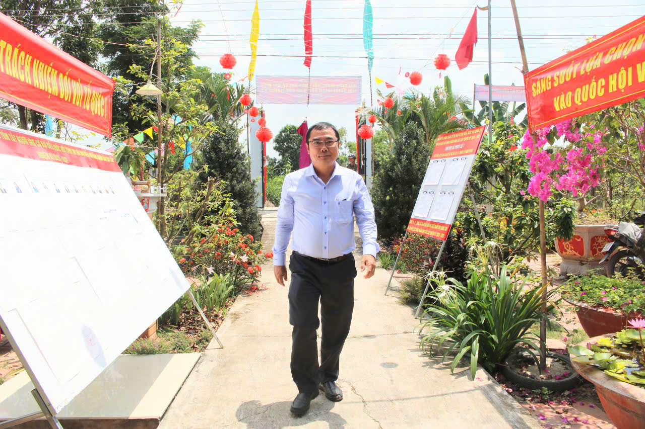 Đồng chí Bùi Công Phước kiểm tra công tác bầu cử trên địa bàn xã