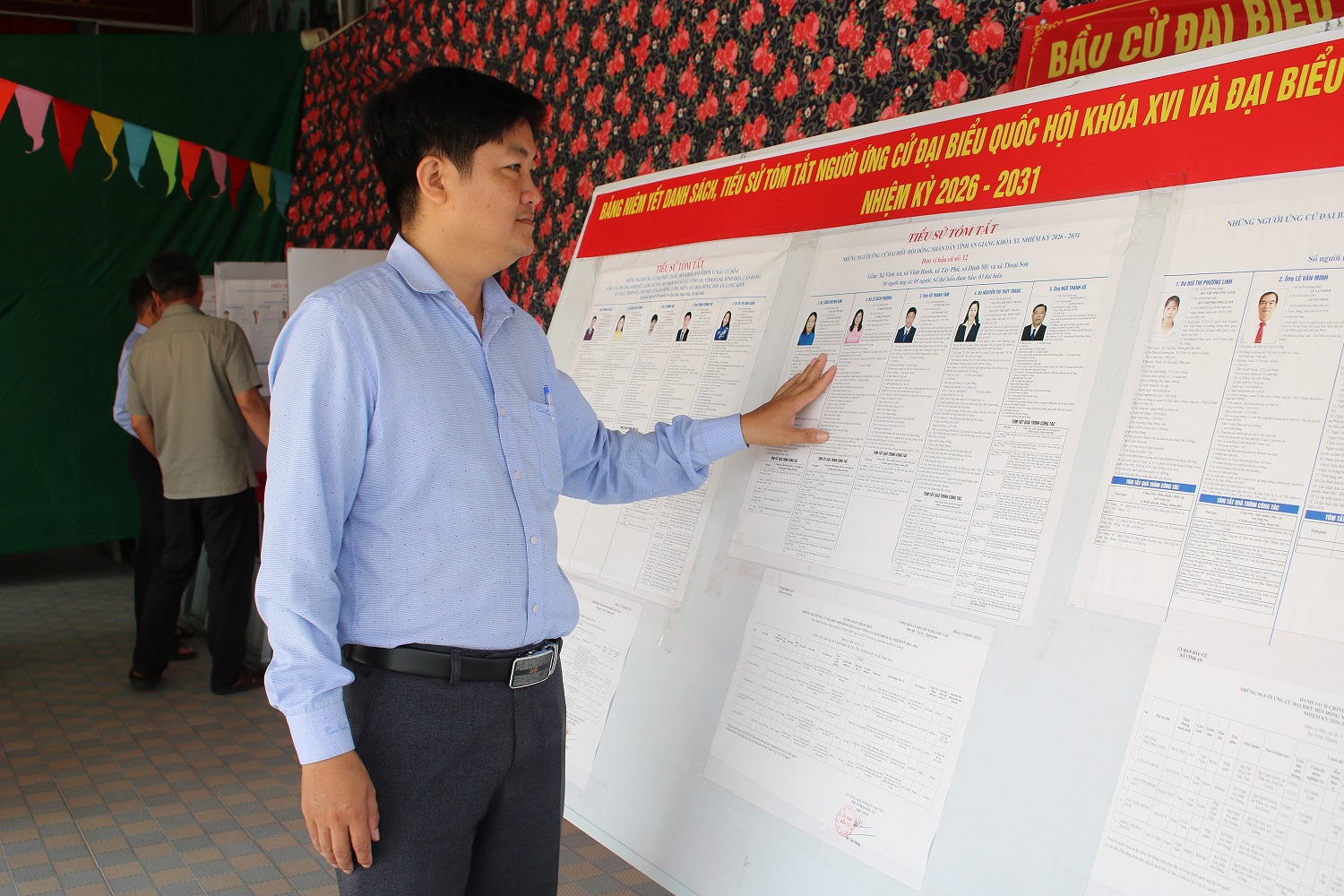 Đồng chí Trần Văn Bình Linh kiểm tra công tác chuẩn bị bầu cử trên địa bàn xã Vĩnh An