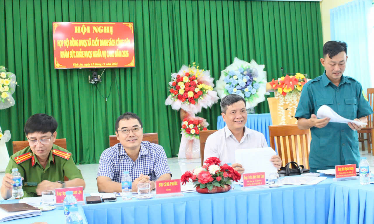 Chiều ngày 12-11-2025, Hội đồng nghĩa vụ quân sự xã Vĩnh An tổ chức hội nghị chốt danh sách công dân khám sức khỏe nghĩa vụ Quân sự, nghĩa vụ Công an nhân dân năm 2026.
