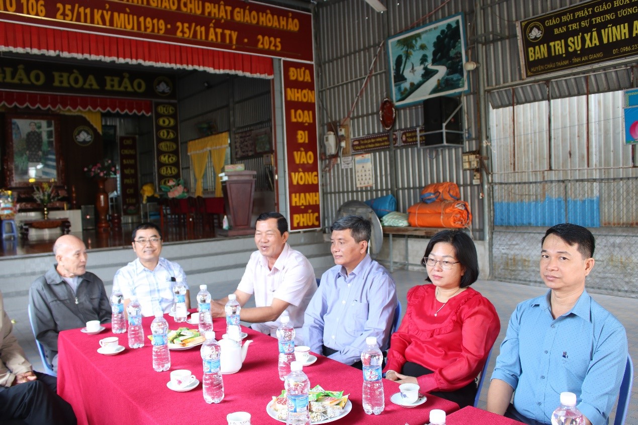 Ngày 10-1-2026, Đoàn công tác Đảng ủy, Hội đồng Nhân dân, Ủy ban nhân dân, Ủy ban Mặt trận Tổ quốc Việt Nam xã Vĩnh An do đồng chí Bùi Công Phước, Bí thư Đảng ủy, Chủ tịch Hội đồng nhân dân xã Vĩnh An làm trưởng đoàn công tác đến thăm và chúc mừng lễ Đản sinh Đức Huỳnh Giáo chủ Phật giáo Hòa Hảo nhân kỷ niệm lần thứ 106, tại Ban trị sự Phật giáo Hòa Hảo xã Vĩnh An.