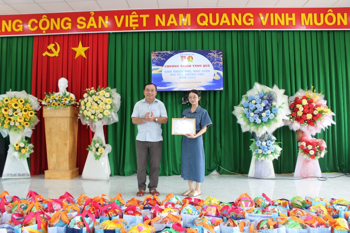 Chiều ngày 1/10/2025, Xã Đoàn Vĩnh An tổ chức trao tặng 100 phần quà Tết Trung thu cho các em học sinh nghèo trường tiểu học B Vĩnh An. Dự trao quà có đồng chí Trương Hòa Lắm, UV.BTV Đảng ủy, Phó Chủ tịch UBND xã Vĩnh An; đồng chí Nguyễn Vạn Huy, Phó Chủ tịch UBMTTQVN xã – Bí thư đoàn thanh niên cộng sản Hồ Chí Minh xã Vĩnh An; đồng chí Nguyễn Thị Ánh Nguyệt, Phó Chủ tịch UBMTTQVN xã – Chủ tịch Hội liên hiệp phụ nữ Việt Nam xã Vĩnh An.