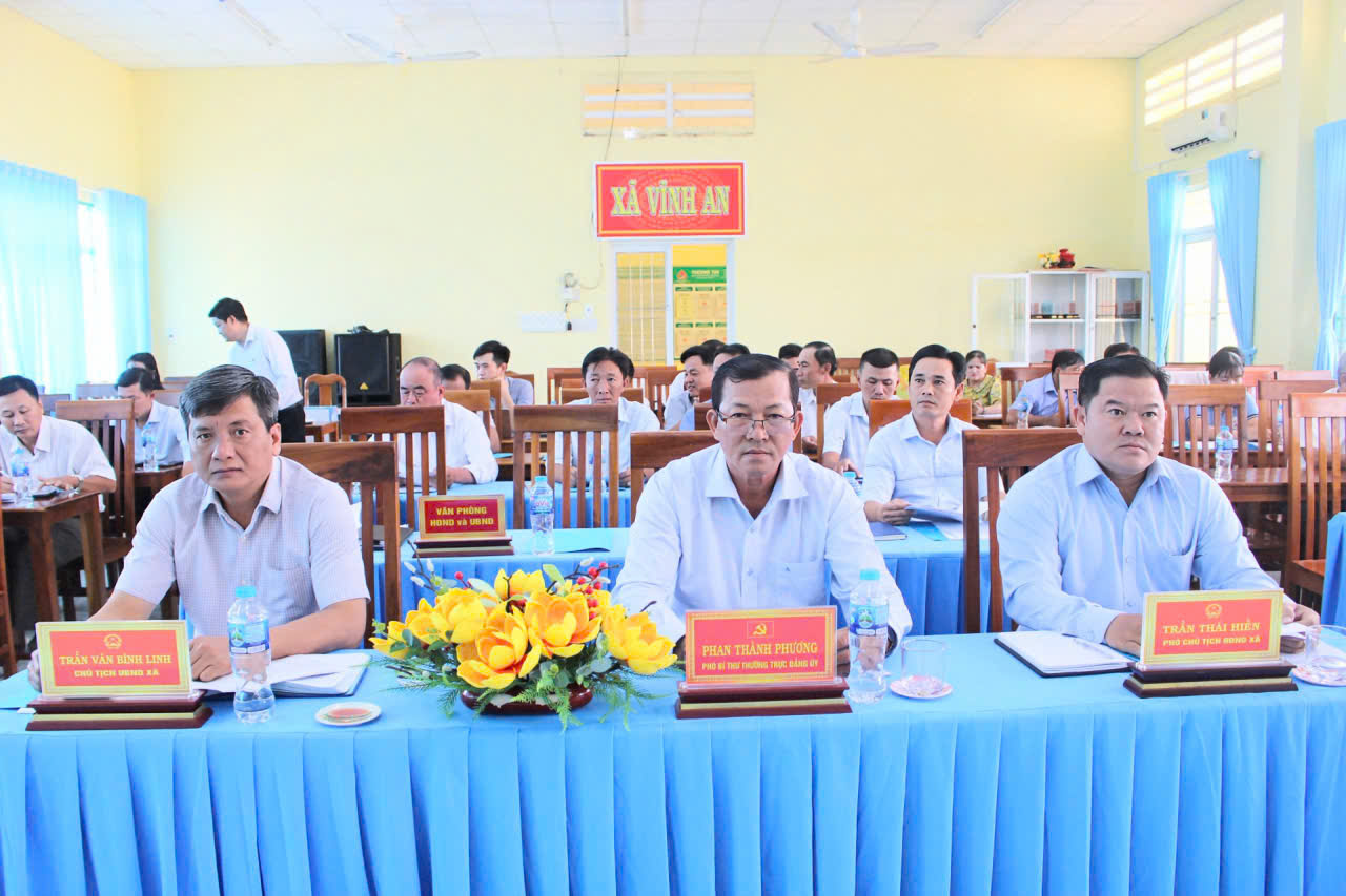 Dự hội nghị có đồng chí Phan Thành Phương, Phó Bí thư thường trực Đảng ủy xã Vĩnh An; Đồng chí Trần Văn Bình Linh, Phó Bí thư Đảng ủy - Chủ tịch Ủy ban nhân dân xã Vĩnh An; Đồng chí Trần Thái Hiền, Ủy viên Ban thường vụ Đảng ủy, Phó Chủ tịch Hội đồng nhân dân xã Vĩnh An; đồng chí Trương Hòa Lắm, Ủy viên Ban thường vụ Đảng ủy, Phó Chủ tịch UBND xã Vĩnh An – Giám đốc Trung tâm Hành chính công xã; Đồng chí Đặng Vũ Khang, Ủy viên Ban thường vụ Đảng ủy, Phó Chủ tịch UBND xã Vĩnh An; Đồng chí Trung tá Nguyễn Thanh Lộc, Ủy viên Ban thường vụ Đảng ủy - Trưởng Công an xã Vĩnh An; đồng chí Bùi Ngân Giang, Chỉ huy trưởng Ban chỉ huy quân sự xã Vĩnh An.