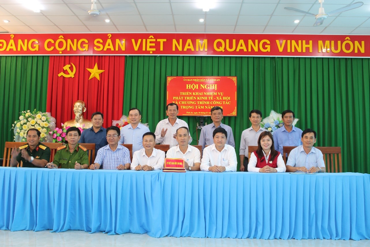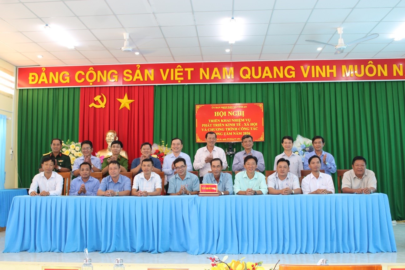 Sáng ngày 30/1/2026, UBND xã Vĩnh An triển khai nhiệm vụ phát triển Kinh tế - Xã hội và chương trình công tác trọng tâm năm 2026. Dự hội nghị có đồng chí Đồng chí Phan Thành Phương, Phó Bí thư thường trực Đảng ủy xã Vĩnh An; đồng chí Trần Văn Bình Linh, Phó Bí thư Đảng ủy - Chủ tịch Ủy ban nhân dân xã Vĩnh An; đồng chí La Thiện Tánh, Ủy viên Ban thường vụ Đảng ủy, Trưởng ban Xây dựng Đảng; đồng chí Trần Thái Hiền, Ủy viên Ban thường vụ Đảng ủy, Phó Chủ tịch Hội đồng nhân dân xã Vĩnh An; đồng chí Trương Hòa Lắm, Ủy viên Ban thường vụ Đảng ủy, Phó Chủ tịch UBND xã Vĩnh An – Giám đốc Trung tâm Hành chính công xã; Đồng chí Trung tá Nguyễn Thanh Lộc, Ủy viên Ban thường vụ Đảng ủy - Trưởng Công an xã Vĩnh An.