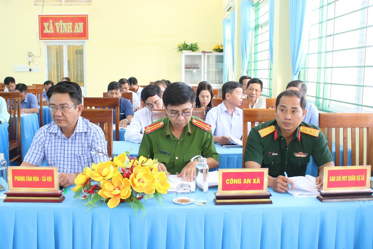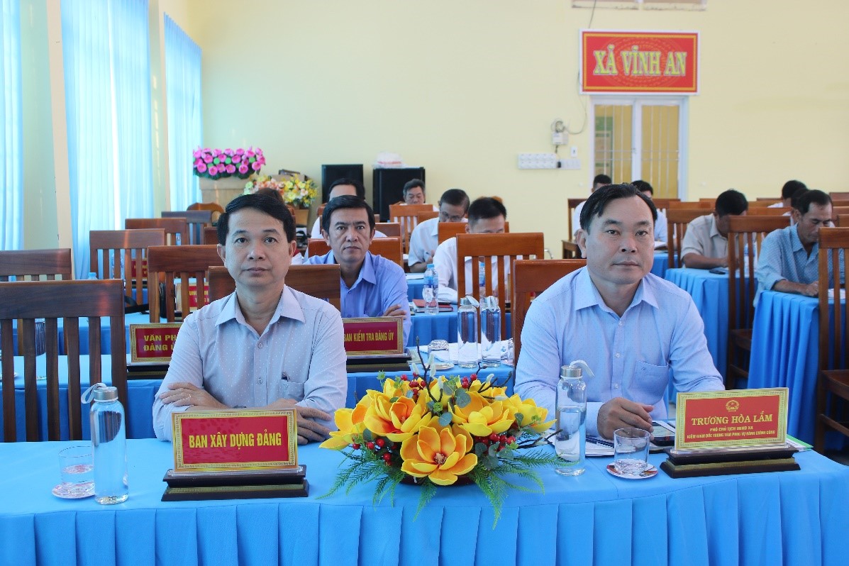 Phát biểu tại hội nghị, đồng chí Trần Văn Bình Linh, Phó Bí thư Đảng ủy - Chủ tịch Ủy ban nhân dân xã Vĩnh An đề nghị trong thời gian tới, các ngành chuyên môn và các ấp cần xác định phát triển nông nghiệp bền vững, Phòng Kinh tế cần thực hiện tốt chương trình mục tiêu Quốc gia về sản xuất nông nghiệp, cũng cố nâng cao vai trò của Hợp tác xã nông nghiệp; đầu tư nâng cấp hệ thống giao thông trên địa bàn xã; tăng cường công tác tuyên truyền vận động nhân dân tham gia xử lý rác, vỏ bao bì thuốc bảo vệ thực vật, bảo vệ môi trường; hoàn chỉnh các thủ tục về các chương trình mục tiêu quốc gia. Bên cạnh đó, đồng chí Trần Văn Bình Linh đề nghị ngành chuyên môn và các ấp cần quản lý trật tự xây dựng, nhà trên sông kênh rạch trên địa bàn; thực hiện tốt việc quản lý quy hoạch sử dụng đất. tiếp tục duy trì phát triển phong trào văn hóa văn nghệ thể dục thể thao, chú trọng phát triển, quảng bá hình ảnh khu di tích Dinh Sơn Trung; đảm bảo giải quyết tốt thủ tục hành chính cho nhân dân; công an và quân sự xã cần tăng cường công tác phối hợp tuần tra đảm bảo an ninh trật tự trên địa bàn, đảm bảo giao quân đạt 100% chỉ tiêu trên giao.